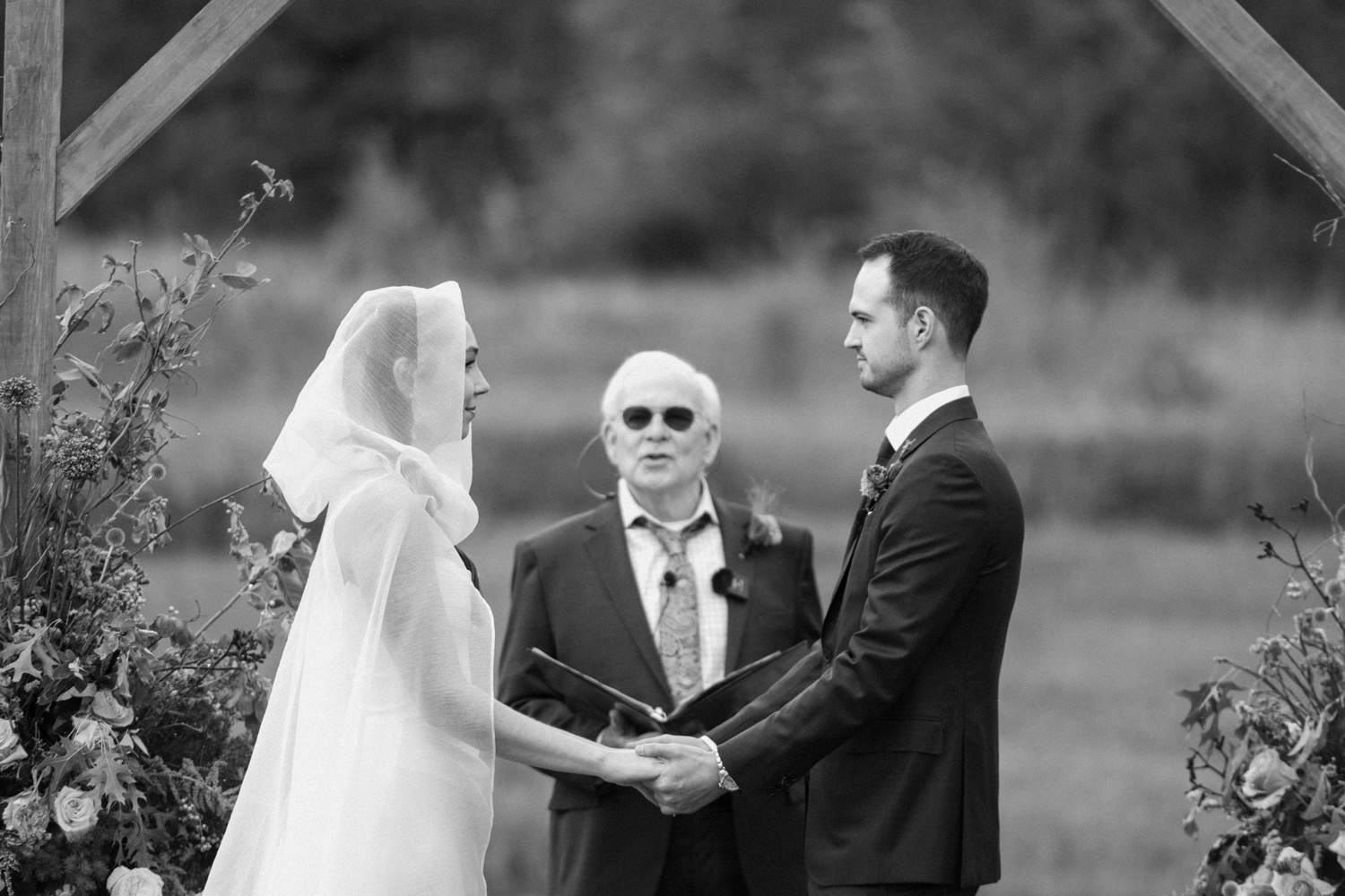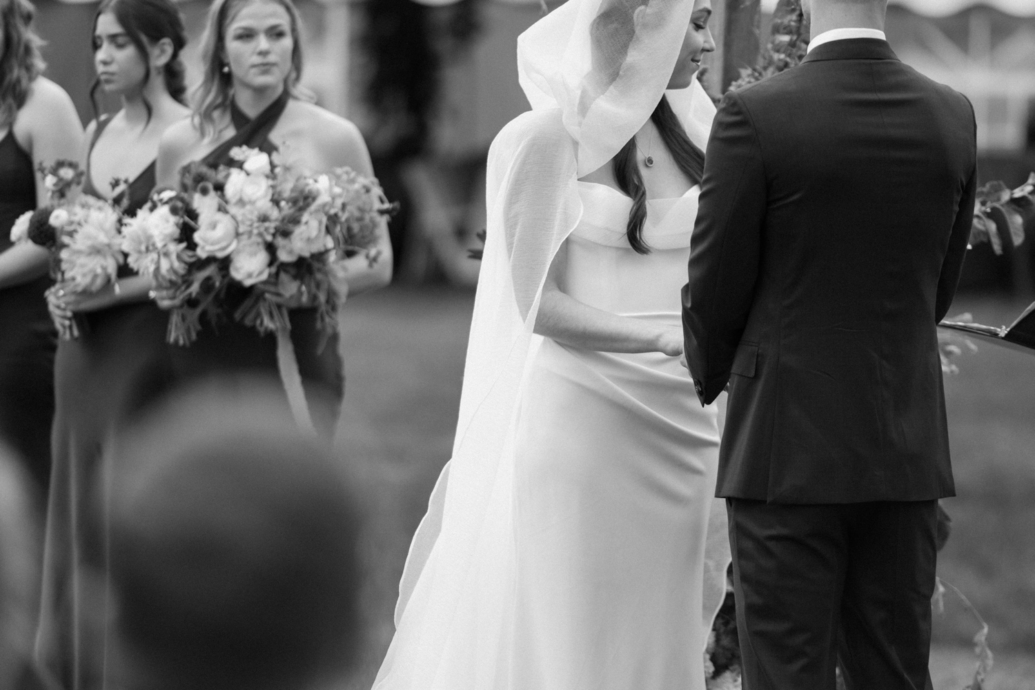 While the rain poured during the getting ready stages of the day, things cleared up *just* in time for Veronica to walk down the aisle with only a slight drizzle covering her custom wedding cape — a perfect way to start the wedding festivities.